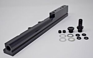 - A custom fuel line fitting is included for the factory fuel line and the ends of each rail are tapped to accept -6 AN or 9/16" x 18 fittings for users who want to use custom fuel lines.