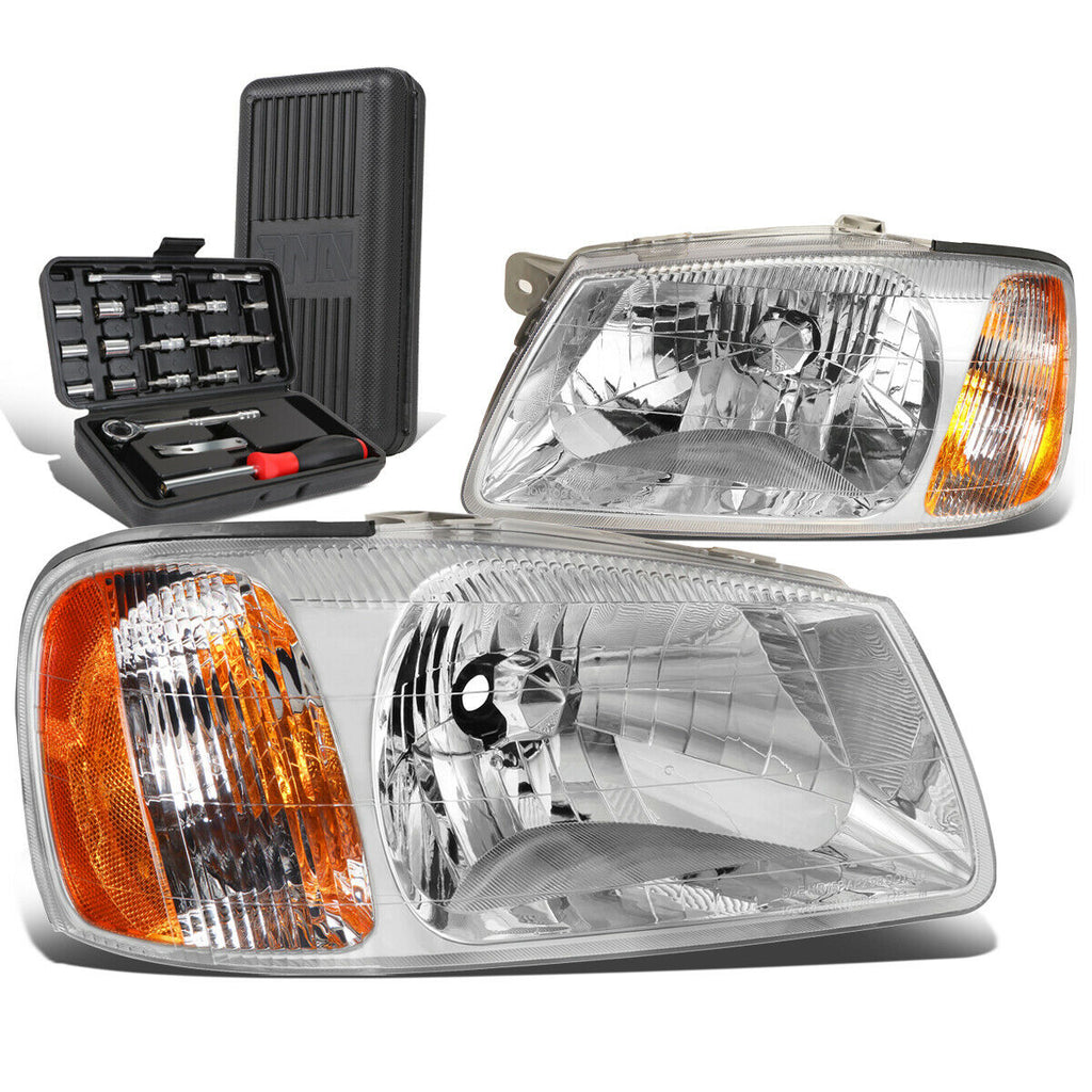 2000-2002 Accent Pair Chrome Housing Amber Side Bumper Headlights+Too