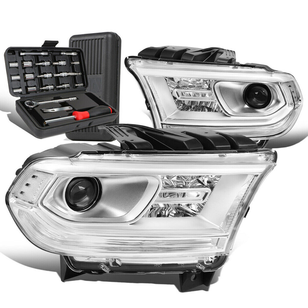 2014-2020 Dodge Durango Pair Chrome/Clear Side Porjector Headlights+Too