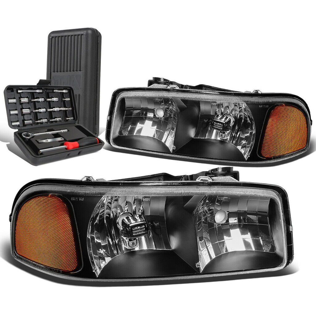 1999-2007 GMC Sierra 1500 Yukon Black Amber Signal Headlight Lamp+Tool Box