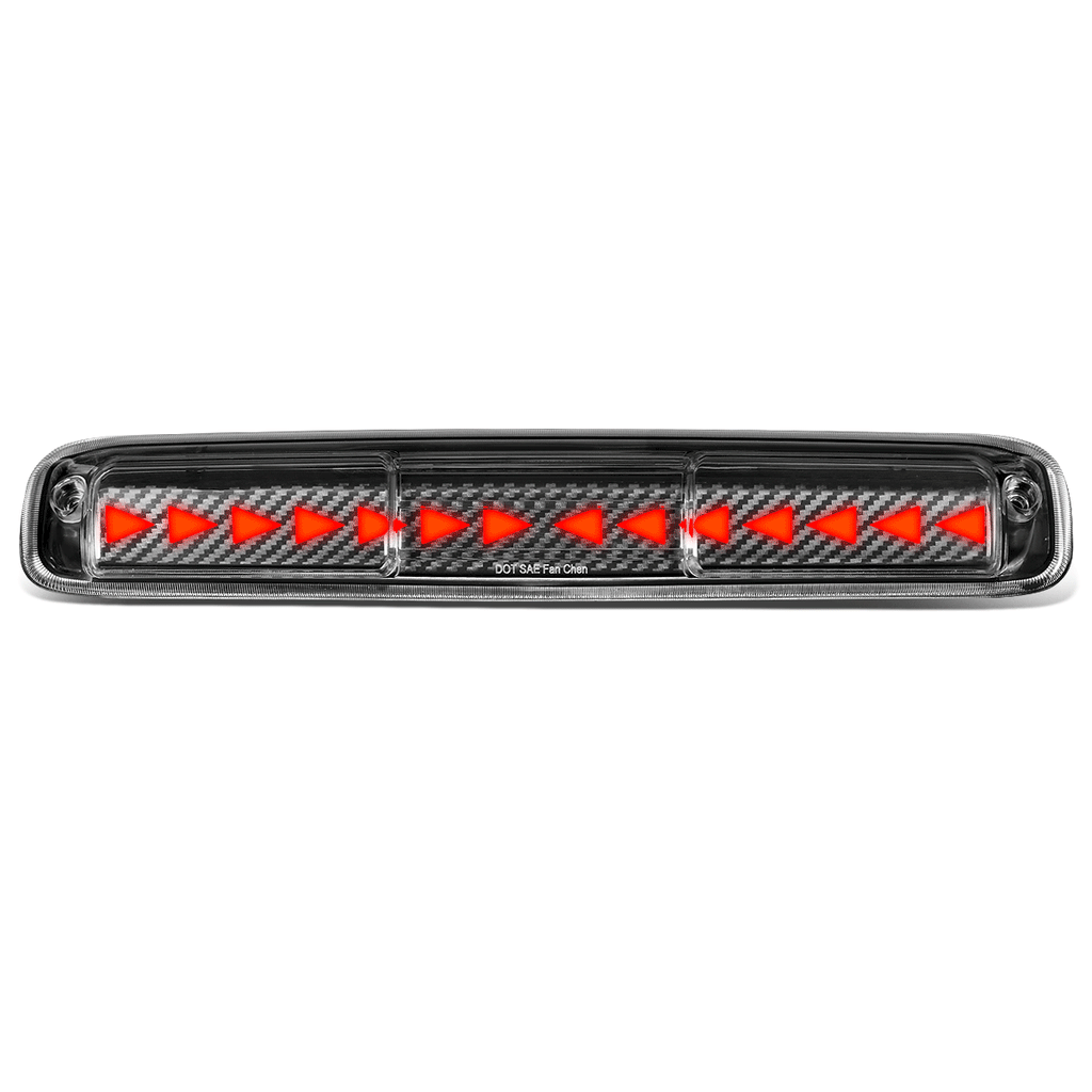 Our LED third brake light is a quick and easy way to dress up your pickup truck. When lit, the bright LEDs (Light Emitting Diodes) are illuminated, and shine up to ten times brighter than standard light bulbs. Even when the brake is not pressed, the integrated cargo light (if equipped) gives off plenty of white light to view your gear in the truck bed. The LED third brake light has a durable Polycarbonate Lens with free form reflector, and available with either the Clear lens or custom Smoked lens.