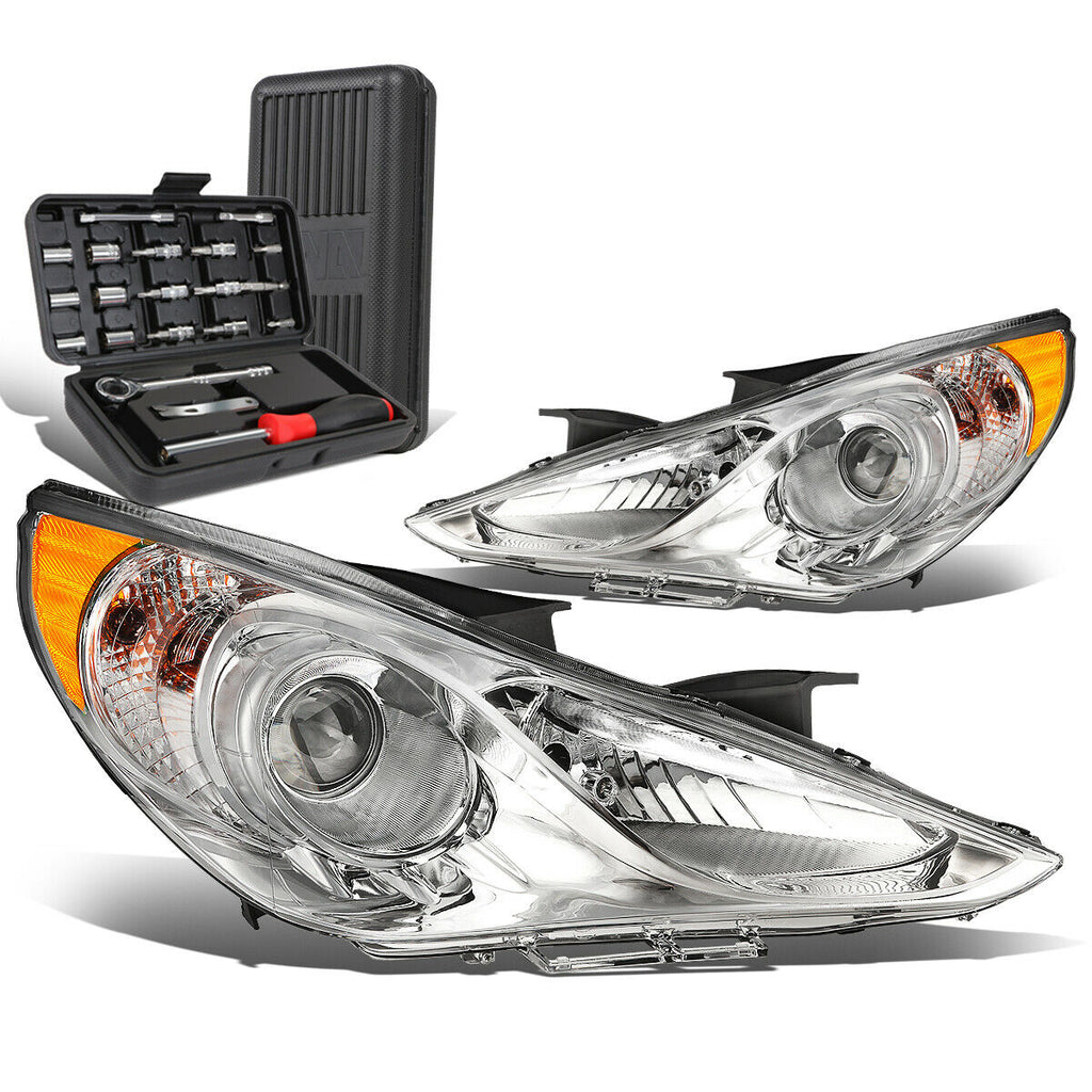 2011-2014 Sonata Pair Chrome/Amber Signal Projector Headlight Lamp+Tool Box