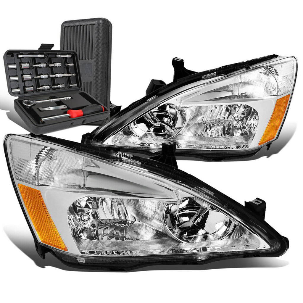 2003-2007 Honda Accord Pair Chrome/Amer Signal Headlight Head Lamps+Tool Box
