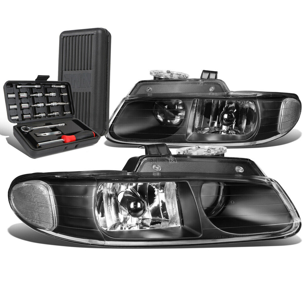 1996-1999 Grand Caravan Black/Clear Signal Projector Headlights+Too