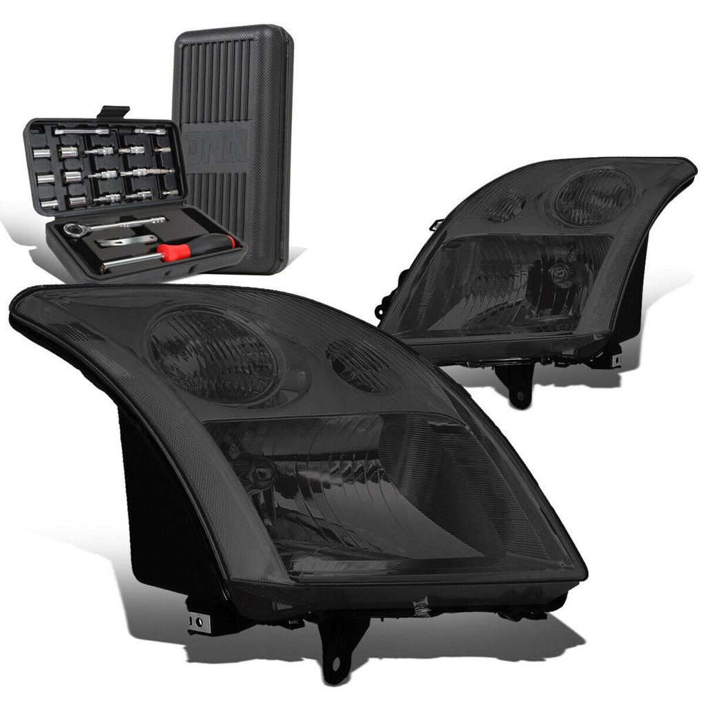 2007-2009 Nissan Sentra Pair Smoked Housing Clear Side Headlights+Too