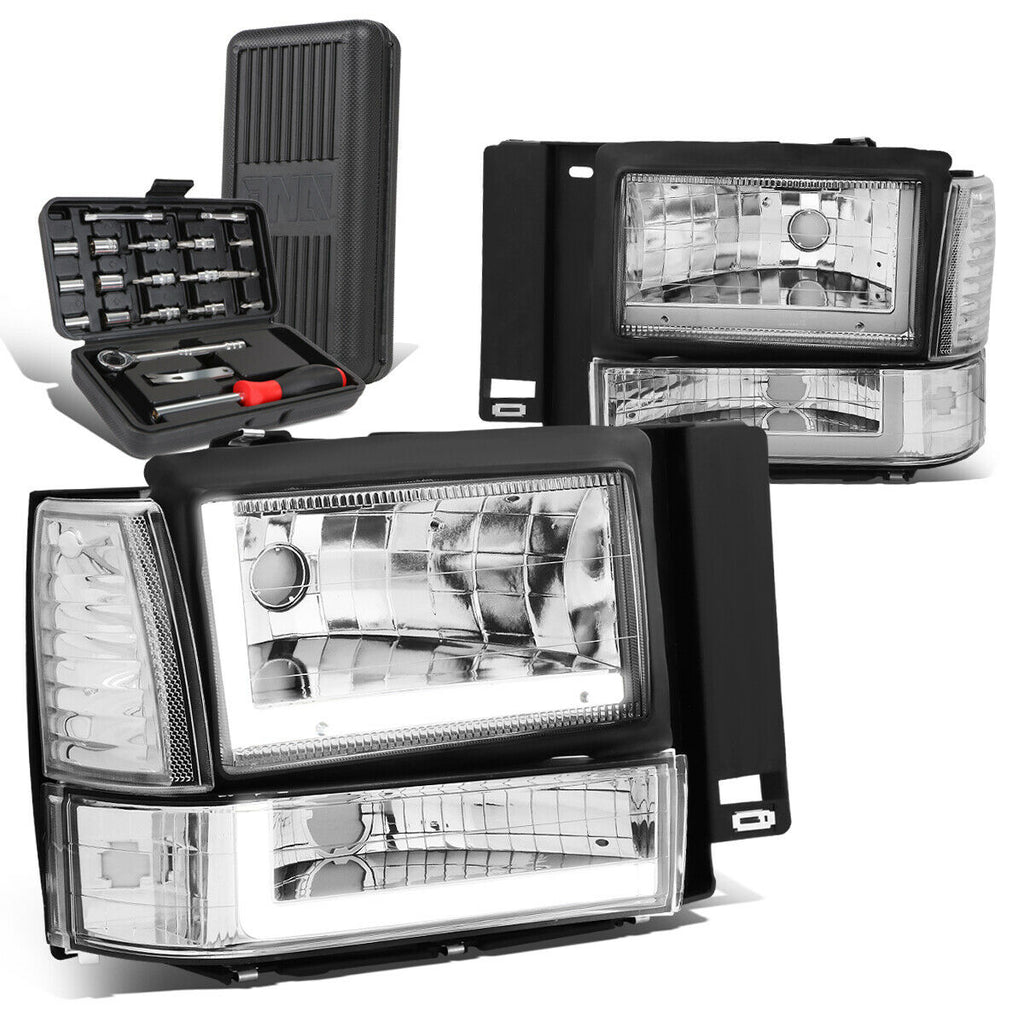 1991-1994 d Explorer LED DRL Tube Crhome Headlights Bumper Lamps+Tool Box