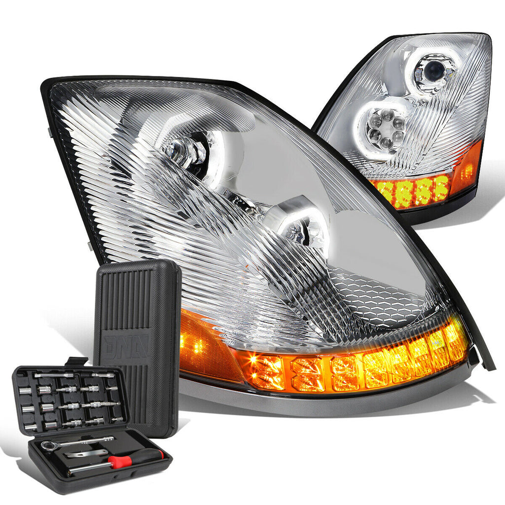 2004-2018 Volvo VN VNL LED DRL Tube Sequential Projector Headlights+Too