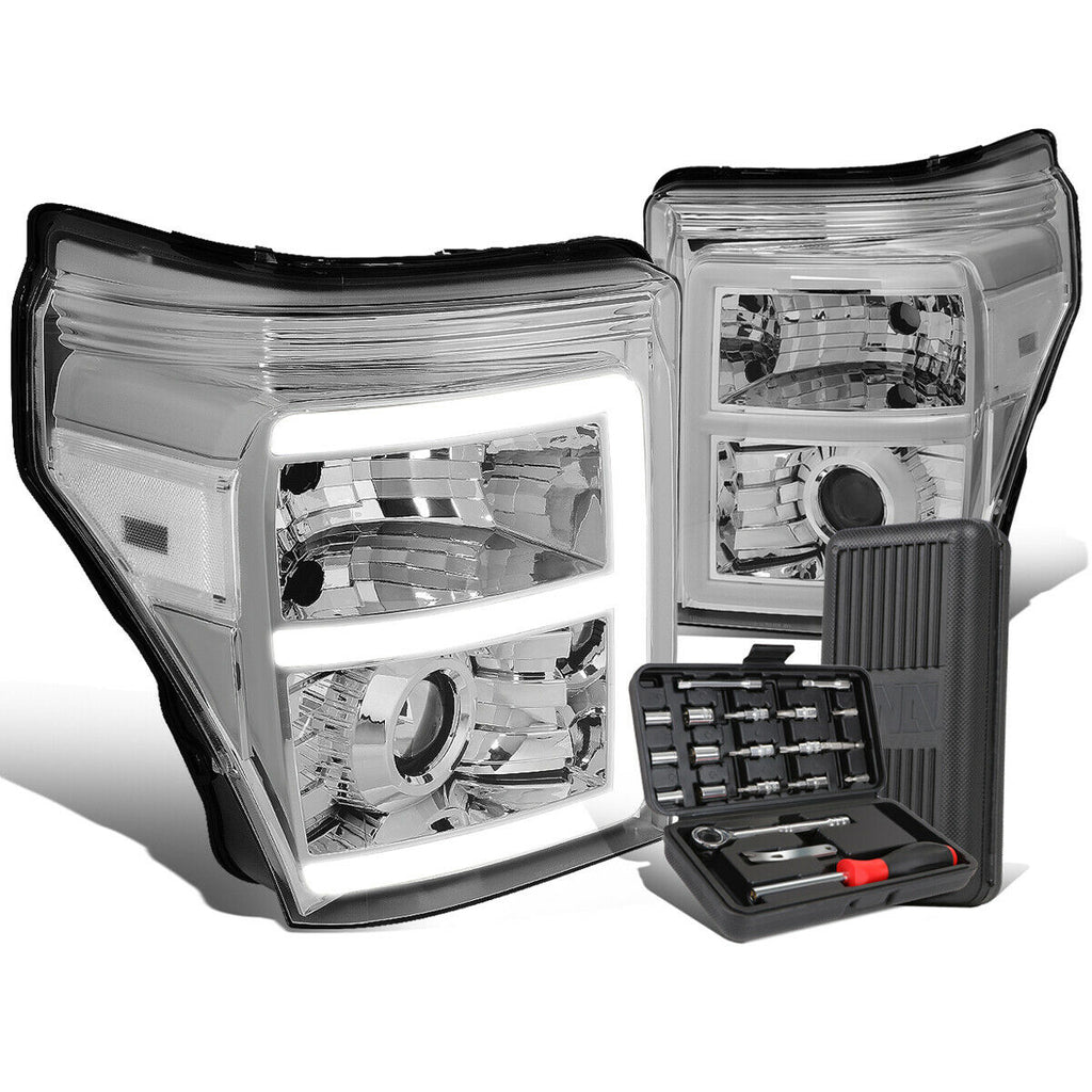 2011-2016 Super Duty E-Bar LED Chrome Clear Projector Headlight+Tool Box