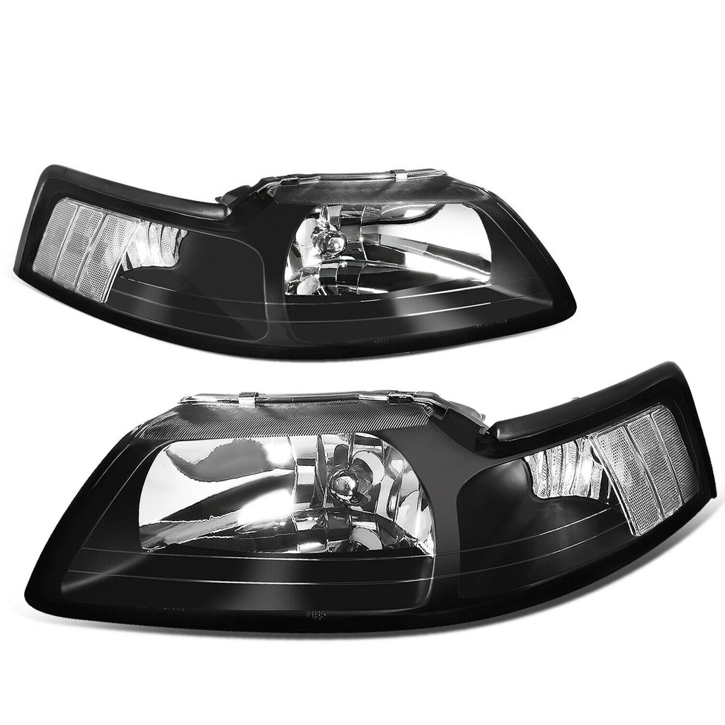 1999-2004 d Mustang Pair Black Housing Clear Corner Headlight/Lamp Set