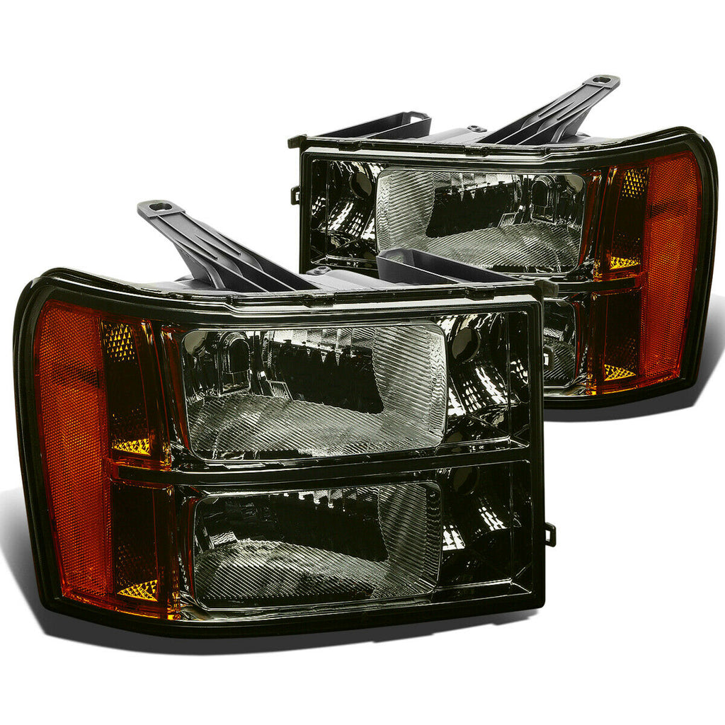2007-2014 GMC Sierra 1500 2500HD Smoked Housing Amber Corner Headlight Lamps