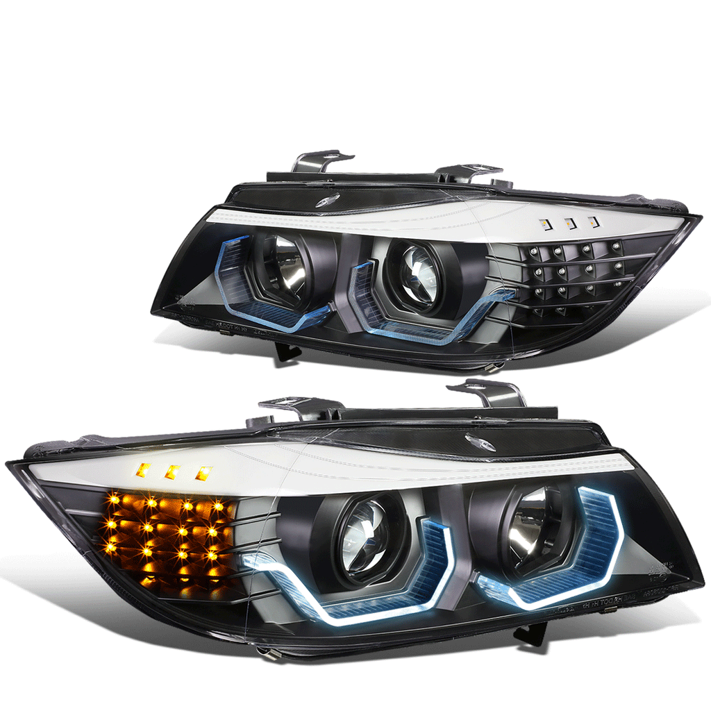 2006-2008 BMW 3-Series E90 4 Door LED 3D Crystal U-Halo Headlight Head Lamps