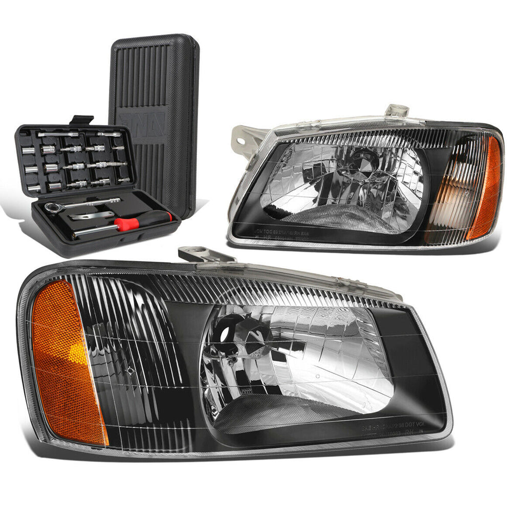 2000-2002 Accent Pair Black Housing Amber Side Bumper Headlights+Too