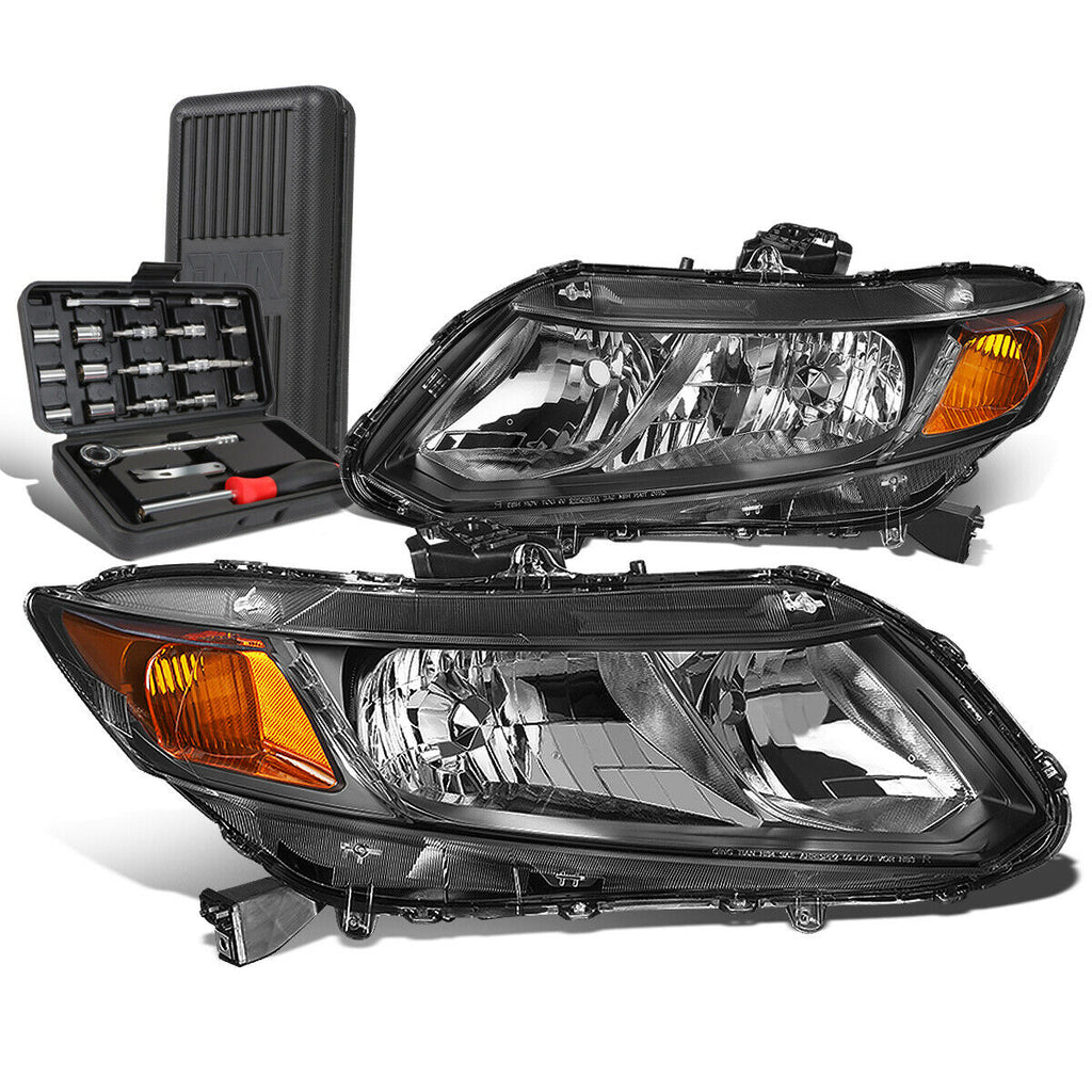 2012-2015 Honda Civic Pair Black/Amber Signal Headlight Lamp LH+RH+Tool Box
