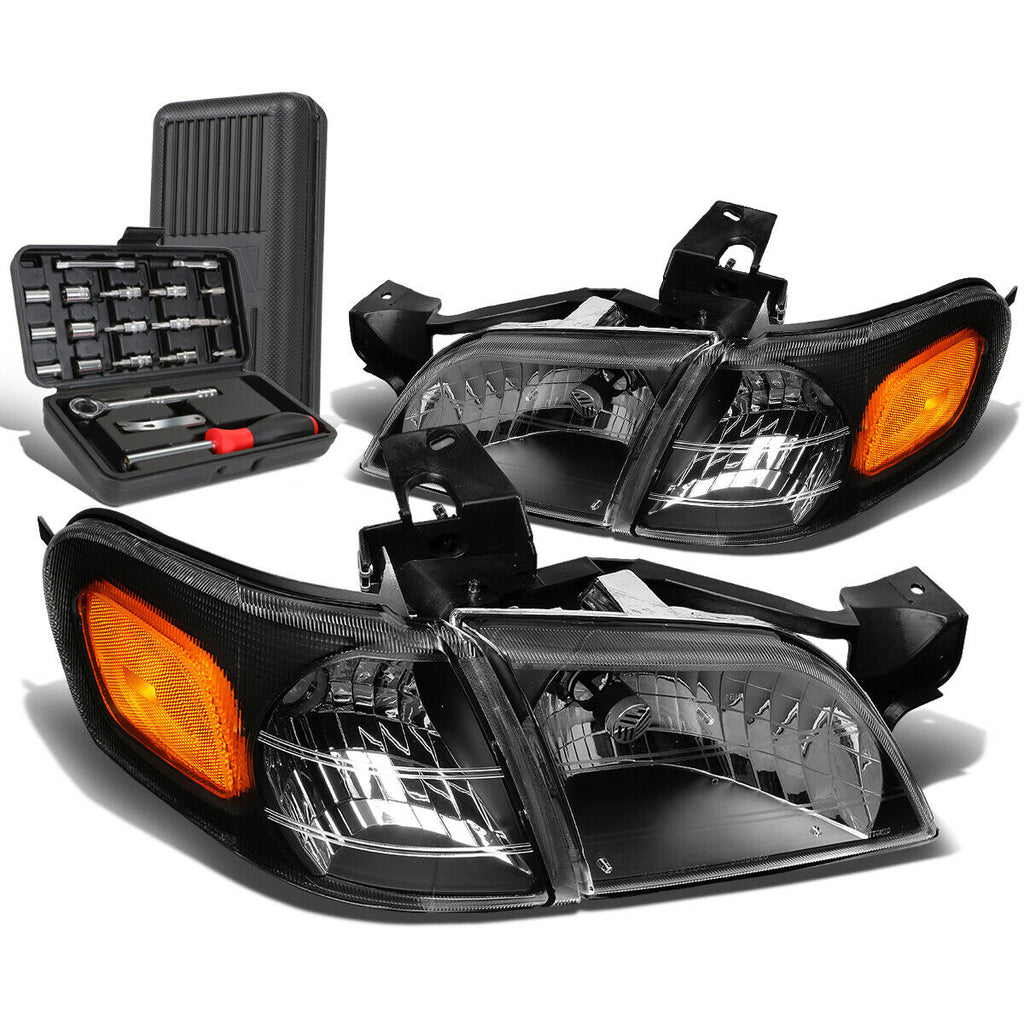 1997-2005 Chevy Venture Black/Amber Side Turn Signal Headlights+Too