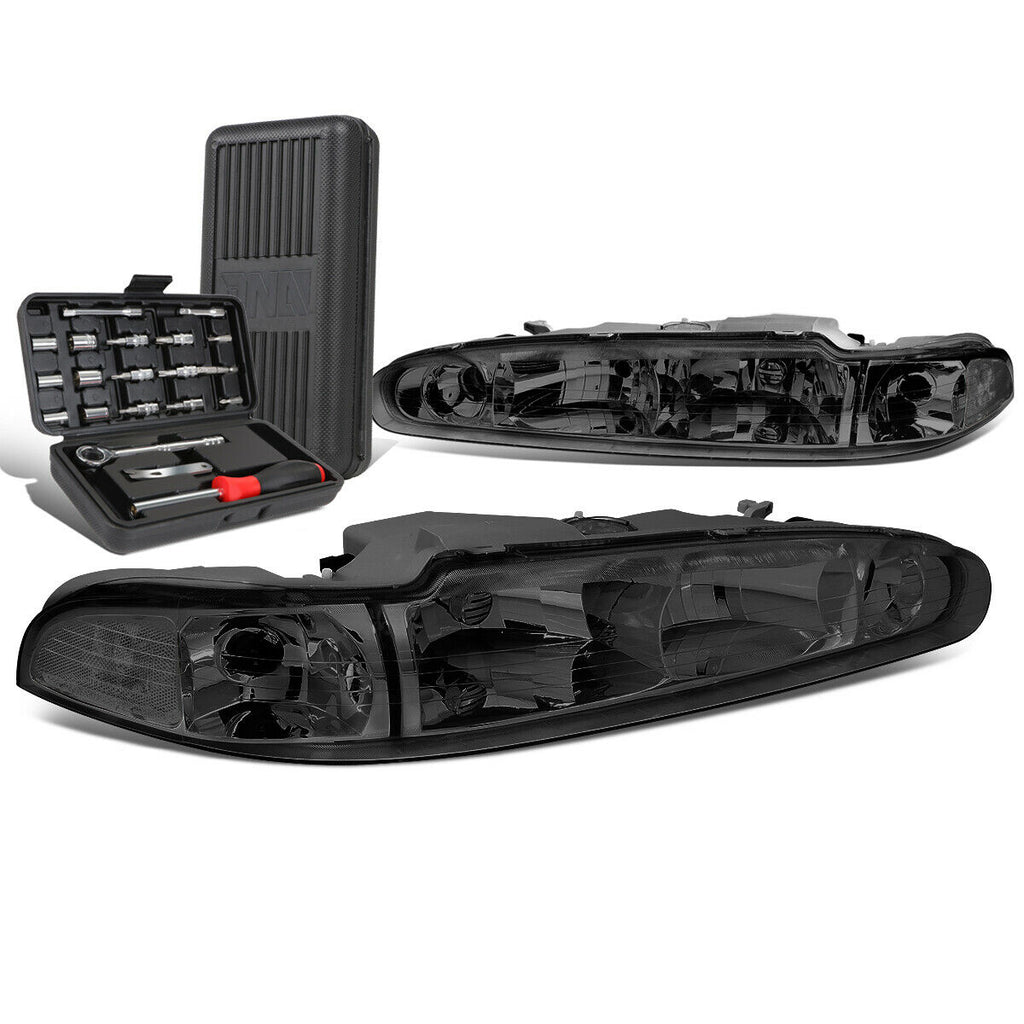 1998-2002 Oldsmobile Intrigue Pair Smoked/Clear Signal Headlights+Too