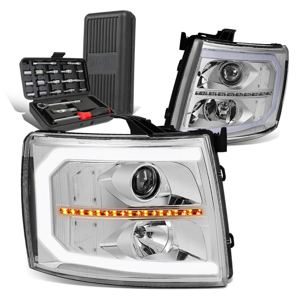 2007-2014 Silverado C-Bar LED DRL Sequential Projector Headlights+Too