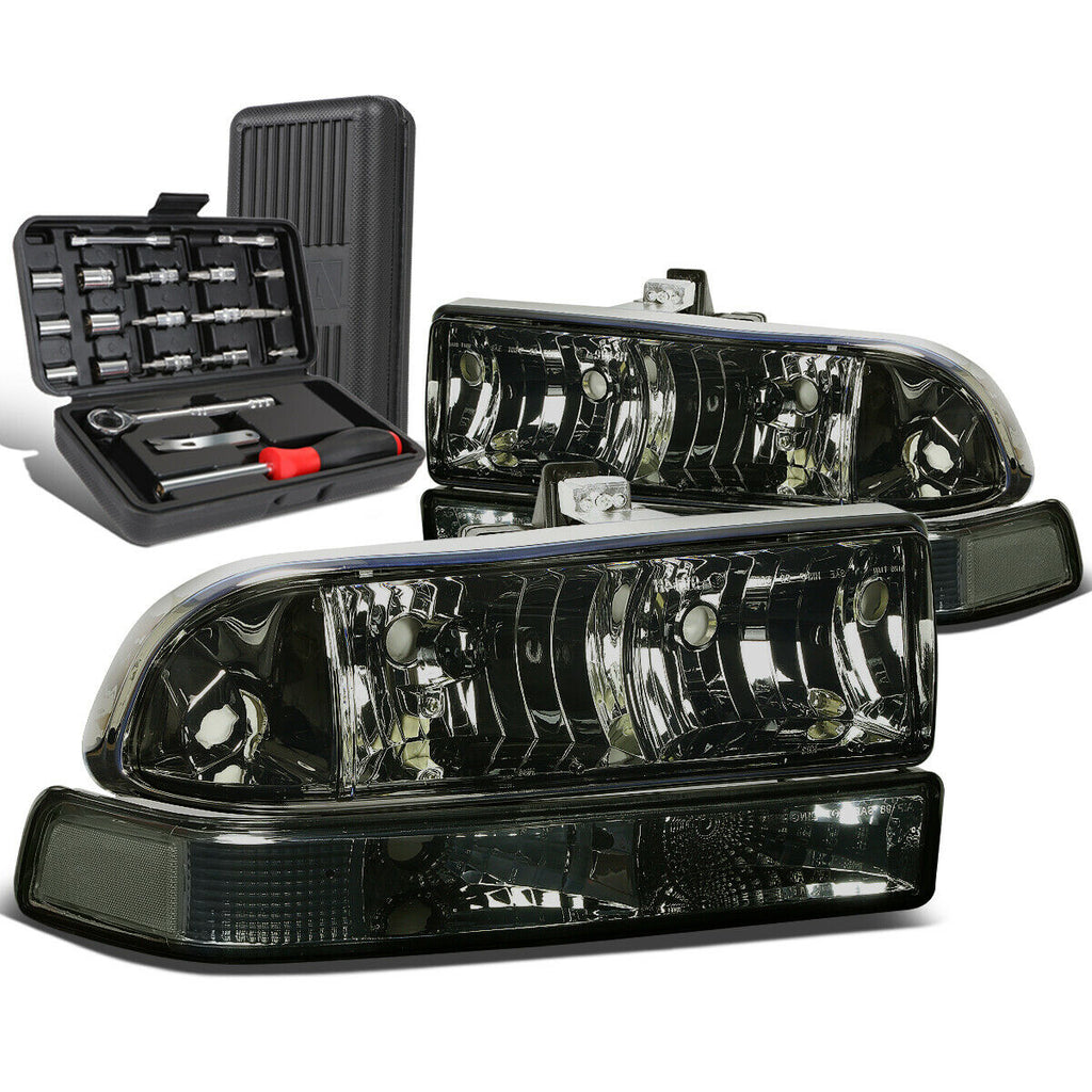 1998-2004 C10 Pickup Blazer Smoked Clear Headlight Bumper Lamps+Tool Box