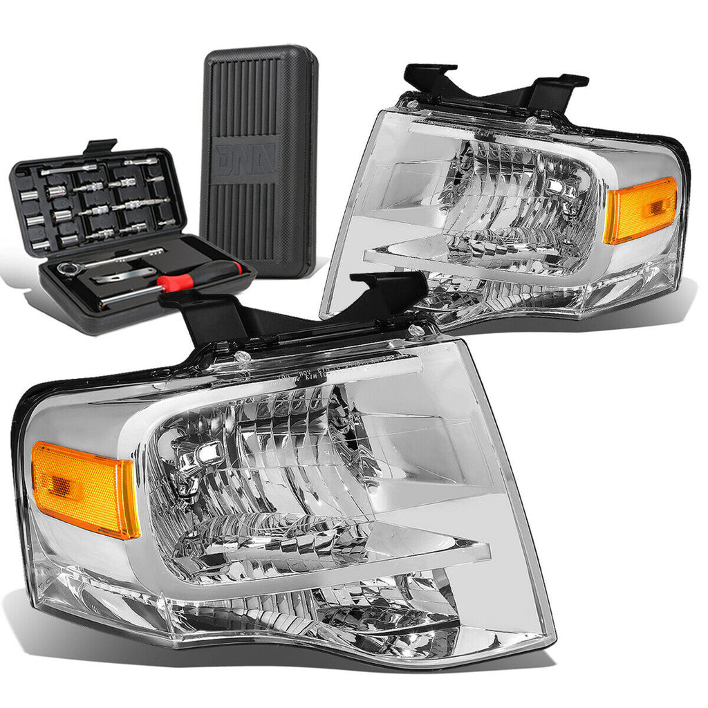 2007-2014 d Expedition Pair Chrome/Amber Side Headlight Lamps+Tool Box