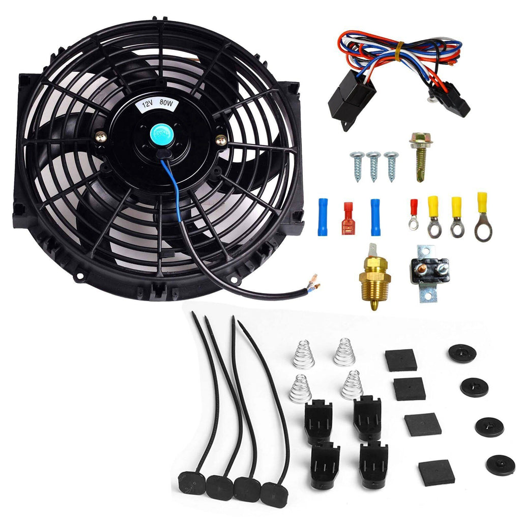 10'' Electric Radiator Cooling Fan 3/8" Probe Ground Thermostat Switch Kit BK