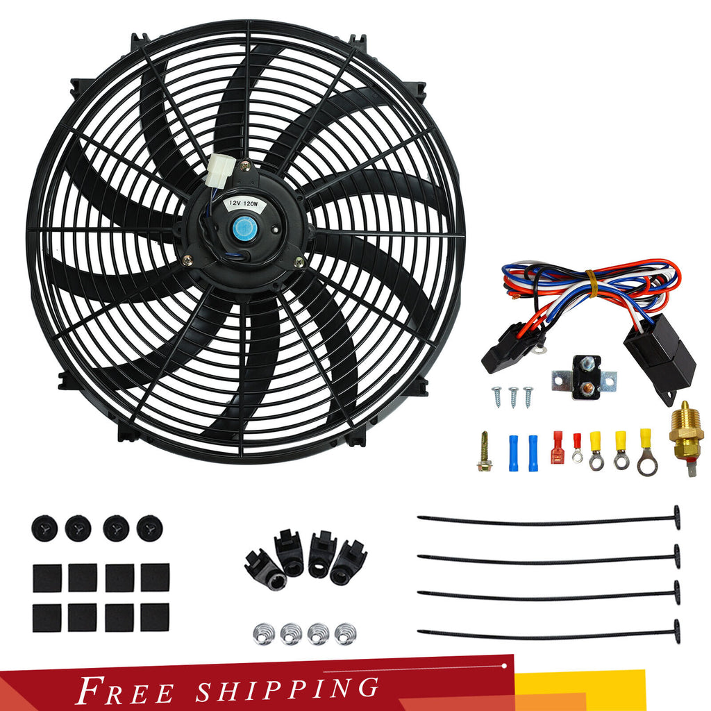 16" 1000CFM Black Electric Radiator Fan Thermostat Wiring Switch Relay Kit US