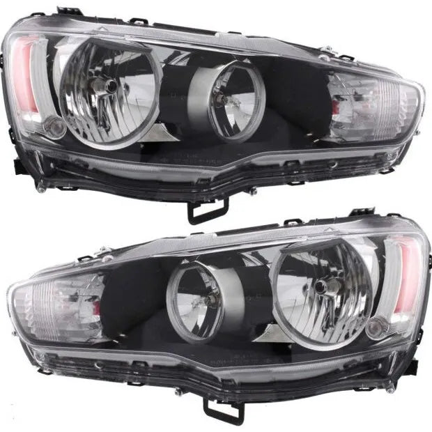 2008-2017 Mitsubishi Lancer EVO X Headlights Headlamps w/Chrome Bezel Left+Right
