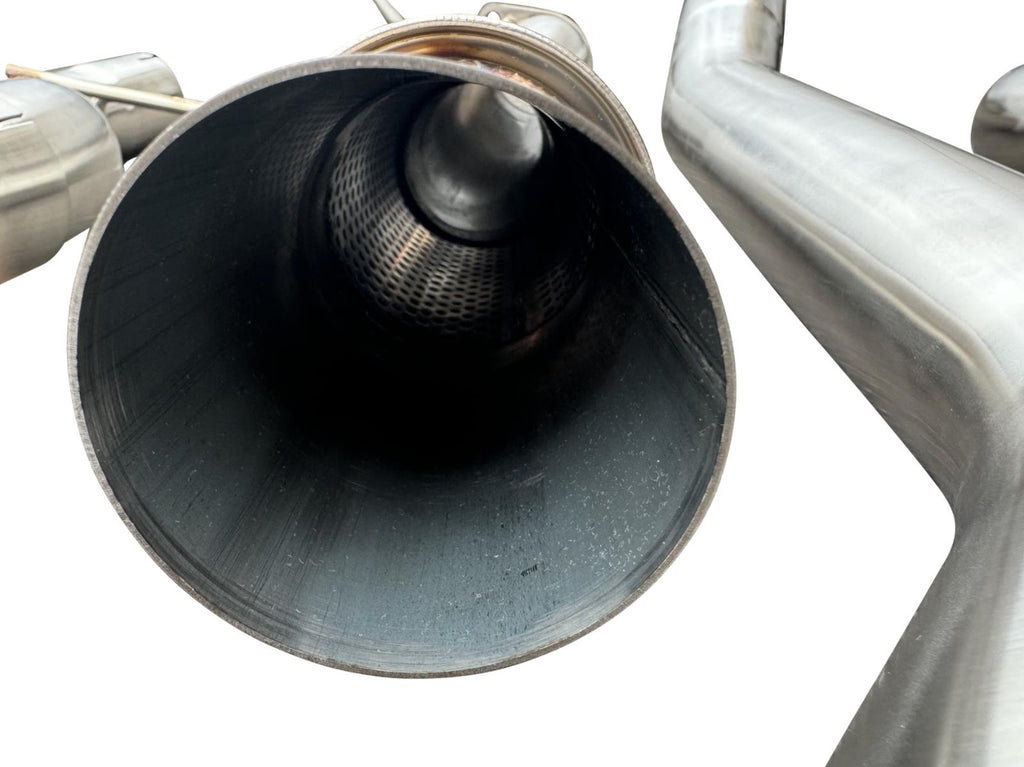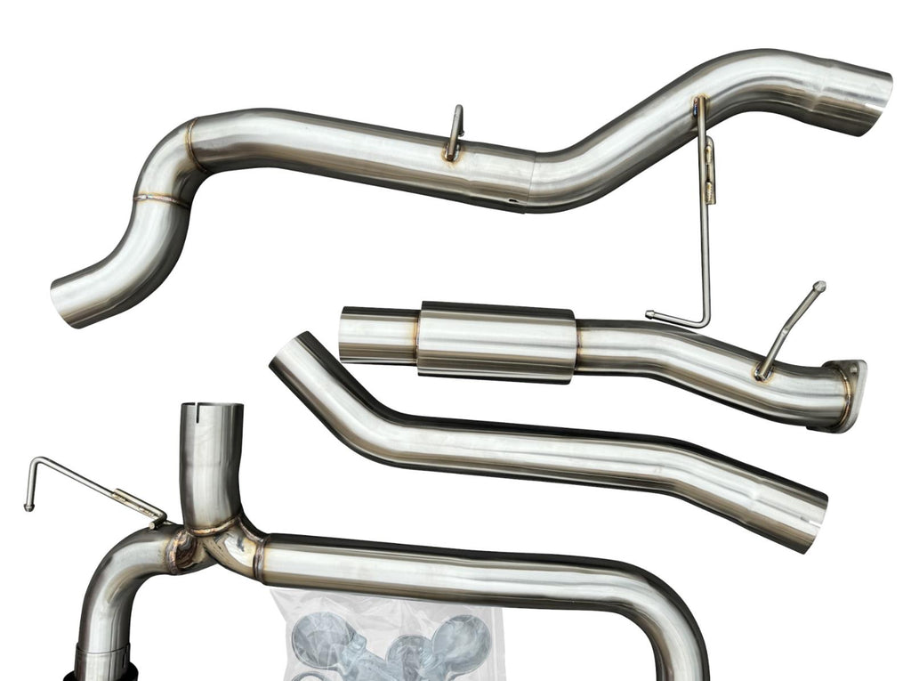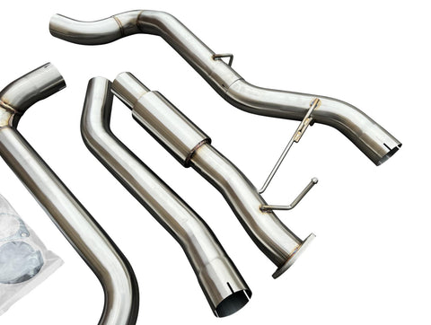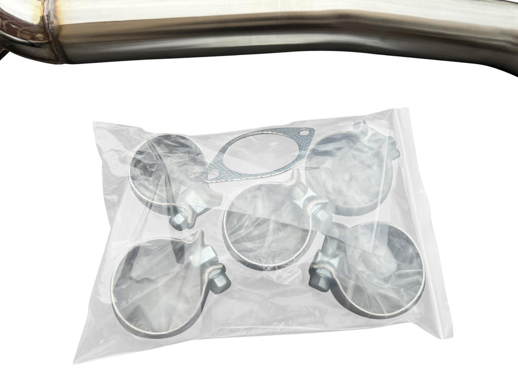 This Exhaust System will easily mount in the stock location with no cutting or extra modifications required. Installation of this Cat-Back can be completed in about two to three hours with just basic hand tools. This Cat-Back will reuse the existing factory hangers for installation.