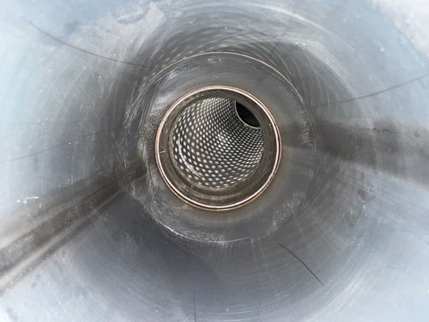 Oversized resonator and muffler with unique stainless steel mash/fiberglass packing help reduce drone.