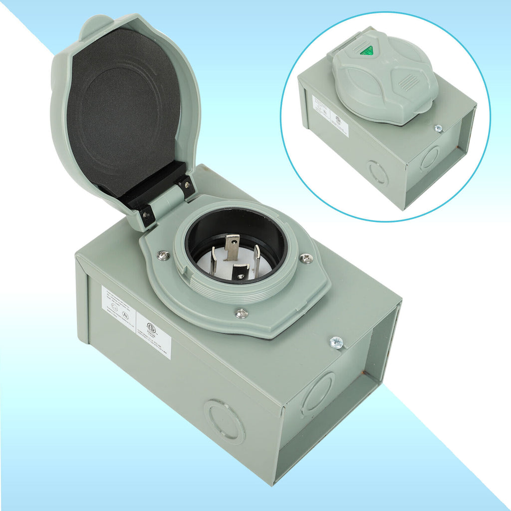 30 Amp Generator Power Inlet Box Outdoor 4-Prong 125/250V NEMA L14-30P
