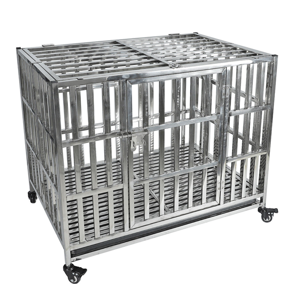37" Heavy Duty Dog Cage Stainless Steel Dog Kennel Crate Folding Pet Playpen