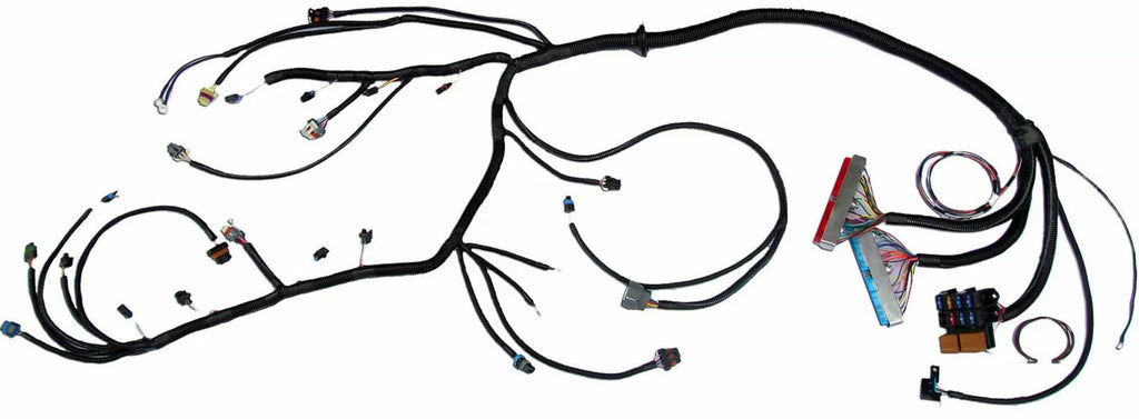 Parts Included: Complete Engine and Transmission Wiring Harness including all engine and transmission sensor connectors, ALDL Connector, 7 ATO Style Fuse Block, Fuel Pump Relay, Switched Power Ignition Relay, Cruise Control Wiring, Performance Shift Mode Wiring, MIL Light Wiring, P/N Wiring, TCC/Switch Wiring, Tach Wiring, Complete Detailed Instructions.