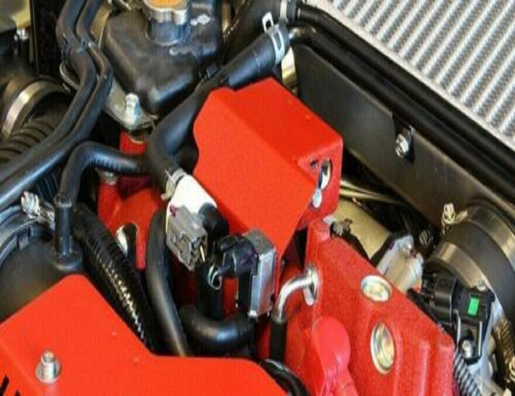 Powder coated for protection from the elements, the textured finish will look awesome for years to come. Our boost solenoid cover is available in red texture powder coating.