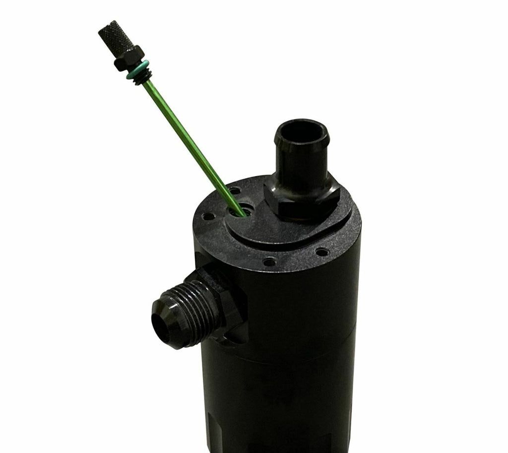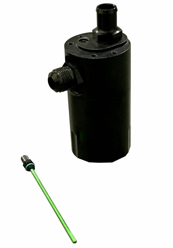- Billet oil catch can with integrated condenser and dipstick