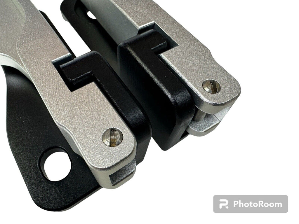 Easy mount and dismount bracket for your hood. Lift your hood above 75 degrees and it will lift off.