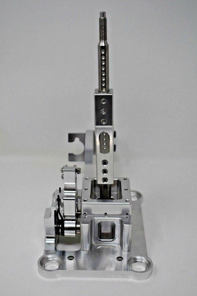- The Race-Spec Shifter uses a simpler fixed elbow position, which is only height adjustable and ideal for circuit racers who really like to use the tallest setting. For drag racers, this design is perfect for heavy shifting in cars with dog box transmissions and straight cut gears. Unlike a stock transmission, most of us know that you can't shift a dog box setup with light hands. At a quick glance, the shifter closely resembles the original design with a few changes made to the shift lever and elbow to support the high demands of race cars.