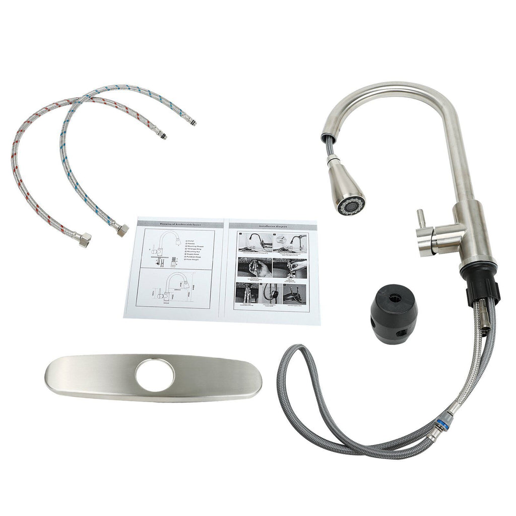Brushed Nickel Kitchen Sink Faucet Pull Out Sprayer Mixer Single Hole+10‘’ Cover