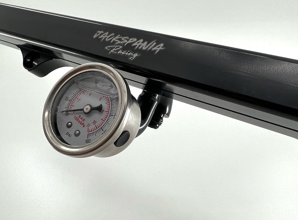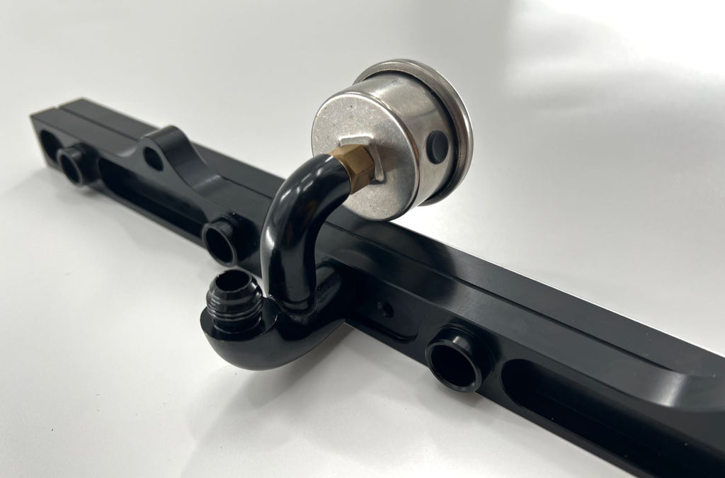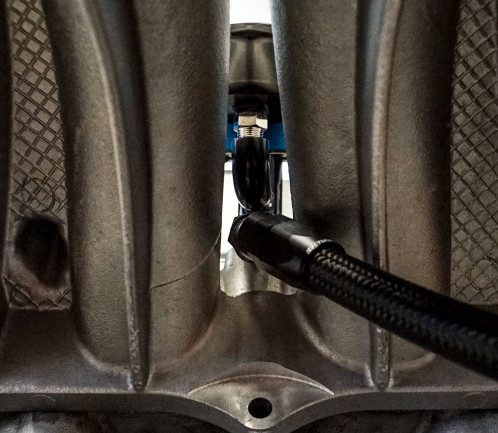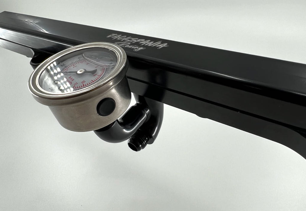 This one piece fitting allows you to mount an AN6 fitting & fuel pressure gauge onto K-Tuned style fuel rails (may work with other rails as well). It allows you to easily add-on a fitting in a clean fashion where it sits perfectly in the center of the fuel rail as well as mounting an AN6 fitting on the underside of the fuel rail.