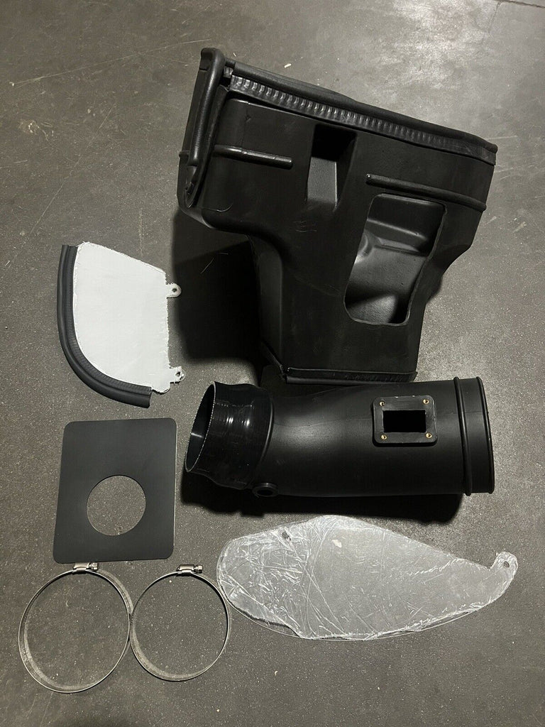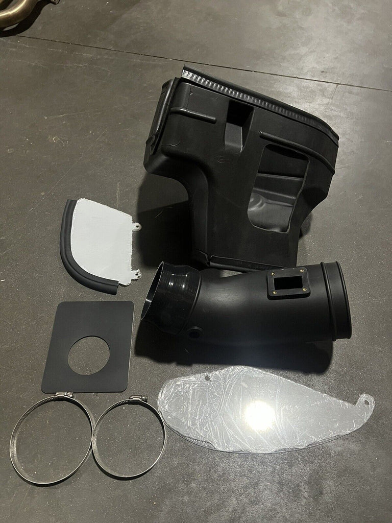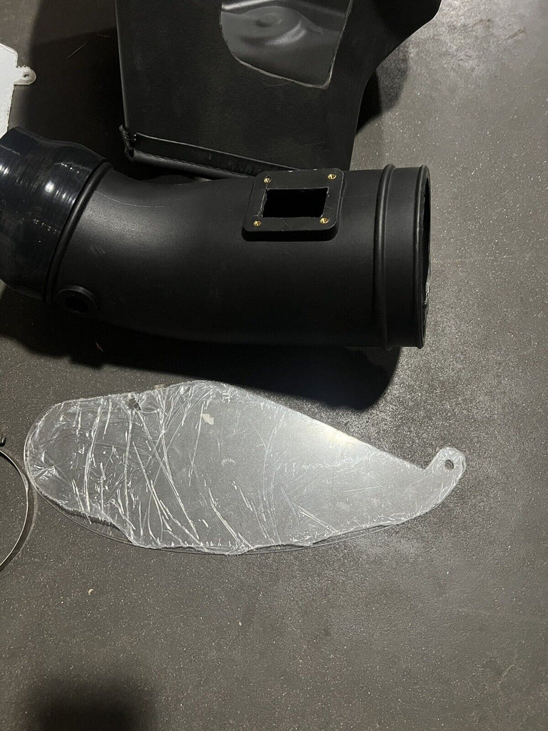 Each kit comes with specially designed and water jet cut Lexan shield that bolts to the bonnet grille. It not only keeps rain off the filter, but also allows the cooler ram air to stay in the box around the filter and not simply be pushed out of the grille.