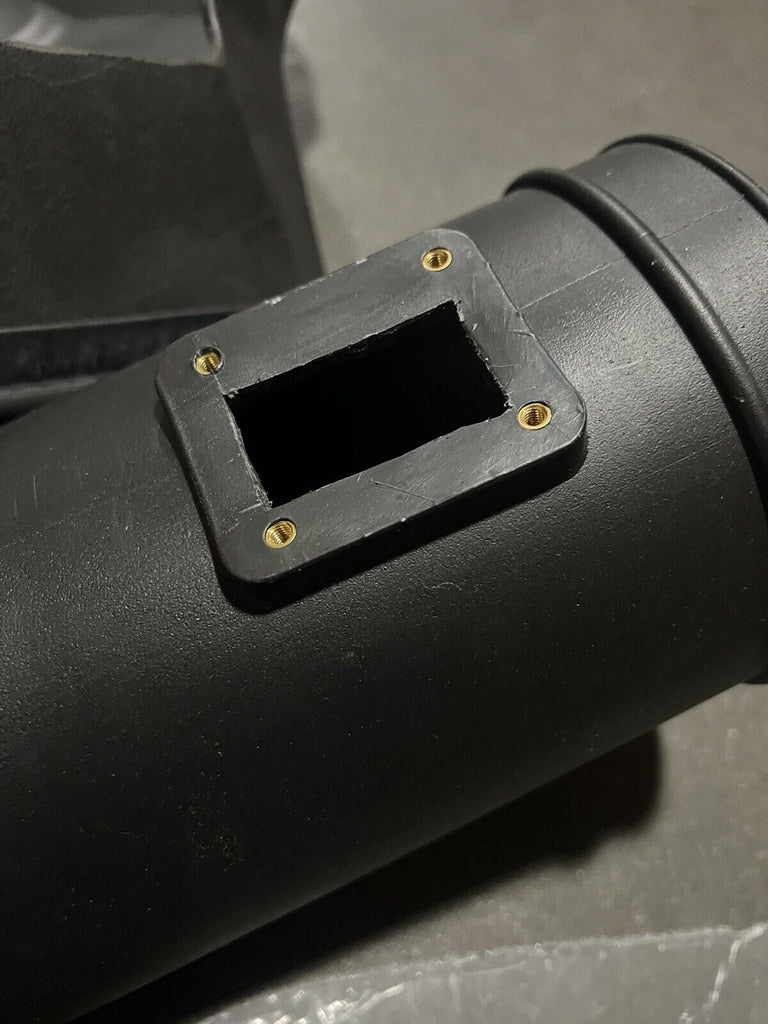 The intake tube is made of roto-molded plastic with a huge filter opening for superior airflow and NO heat build-up as with metal tubes.