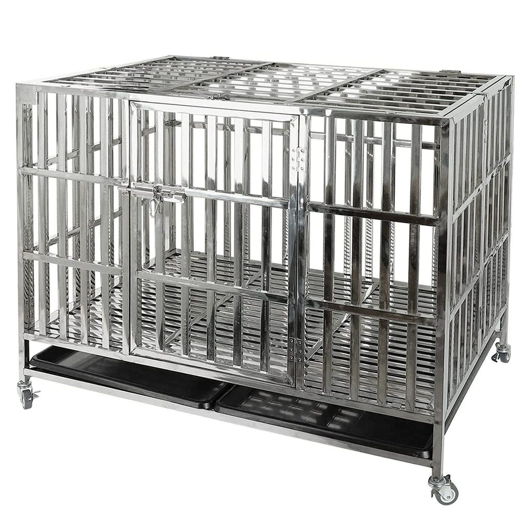Confote 42" Heavy Duty Stainless Steel Dog Cage Crate Folding Pet Playpen Wheels