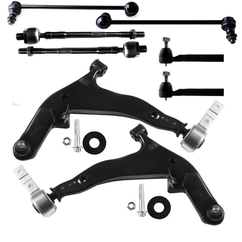 1.Specifications:(1)K620558 Front Lower Left Control Arm And Ball Joint - Driver Side,(1)K620559 Front Lower Right Control Arm And Ball Joint,(1)K80255 Front Sway Bar End Link - Driver Side,(1)K80256 Front Sway Bar End Link - Passenger Side,(2)EV800047 Inner Tie Rod End,(2)ES800046 Outer Tie Rod End