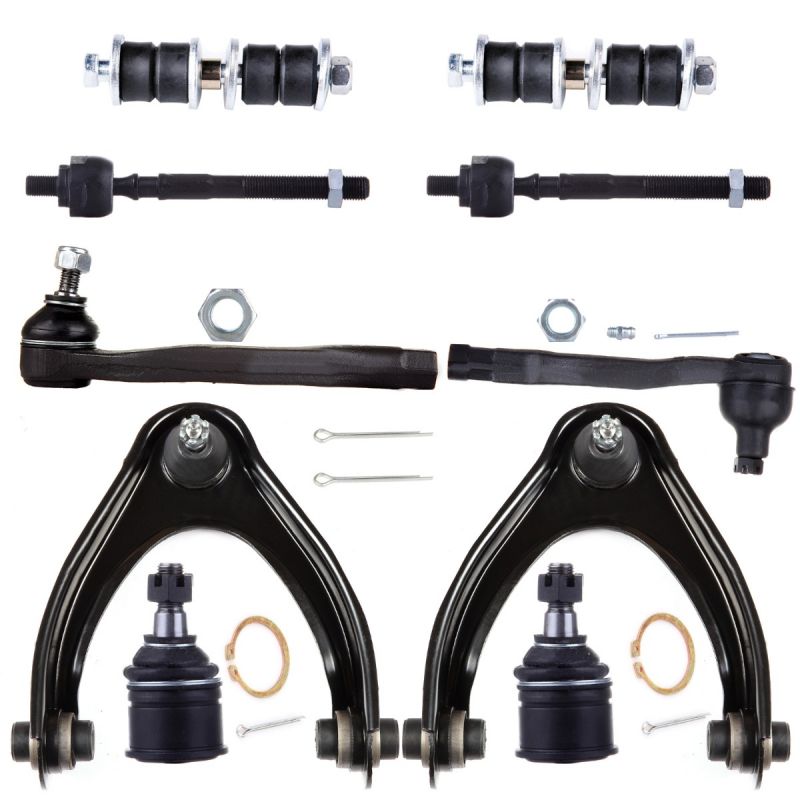 1.Specifications:(2)EV367 Front Inner Tie Rod End,(2)K9802 Front Lower Ball Joint,(1)ES2946L Front Outer Tie Rod End - Driver Side,(2)K90123 Front Sway Bar End Link,(1)K90451 Front Upper Control Arm And Ball Joint - Driver Side,(1)K90450 Front Upper Control Arm And Ball Joint - Passenger Side,(1)ES2943R Outer Tie Rod End - Passenger Side