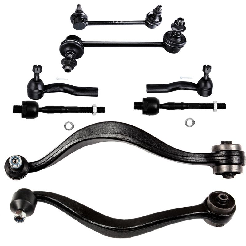 1.Specifications:(1)K620492 Front Lower Control Arm And Ball Joint - Rear Position Driver Side, (1)K620493 Front Lower Control Arm And Ball Joint - Rear Position Passenger Side, (1)ES800102 Front Outer Tie Rod End - Driver Side, (1)ES800101 Front Outer Tie Rod End - Passenger Side, (1)K80251 Front Sway Bar End Link - Driver Side, (1)K80250 Front Sway Bar End Link - Passenger Side, (2)EV800531 Inner Tie Rod End