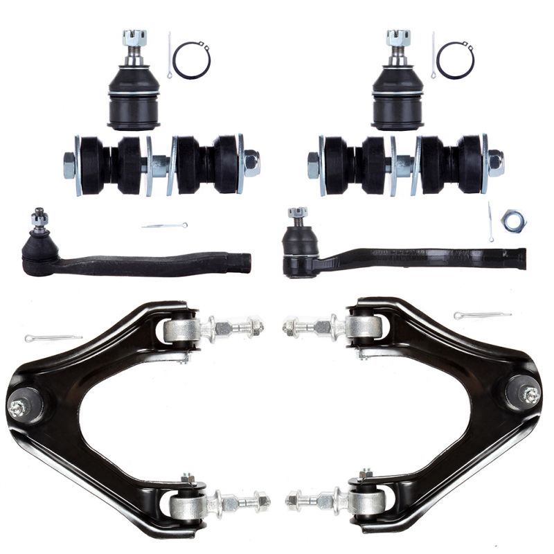 1.Specifications:(2)K9643 Front Lower Ball Joint, (1)ES3392R Front Outer Tie Rod End - Driver Side, (1)ES3391R Front Outer Tie Rod End - Passenger Side, (2)K90122 Front Sway Bar End Link, (1)K90447 Front Upper Control Arm And Ball Joint - Driver Side, (1)K90446 Front Upper Right Control Arm And Ball Joint