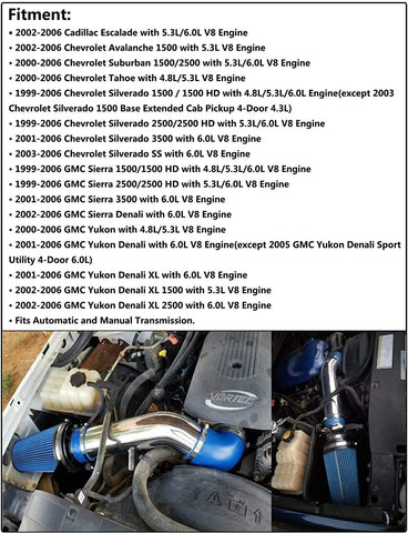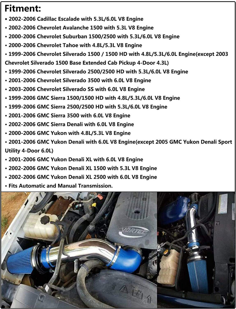 4" Cold Air Intake Kit For 1999-2006 GMC Chevrolet 4.8L 5.3L 6.0L V8 Engine