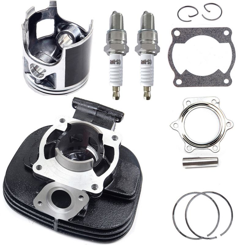 2.Package Includes: 1X Spark Plug 1X CYLINDER. 1X HEAD GASKET. 1X BASE GASKET. 1X PISTON. 1X PISTON PIN. 2X CIRCLIPS. 1X COMPLETE SET OF RINGS.