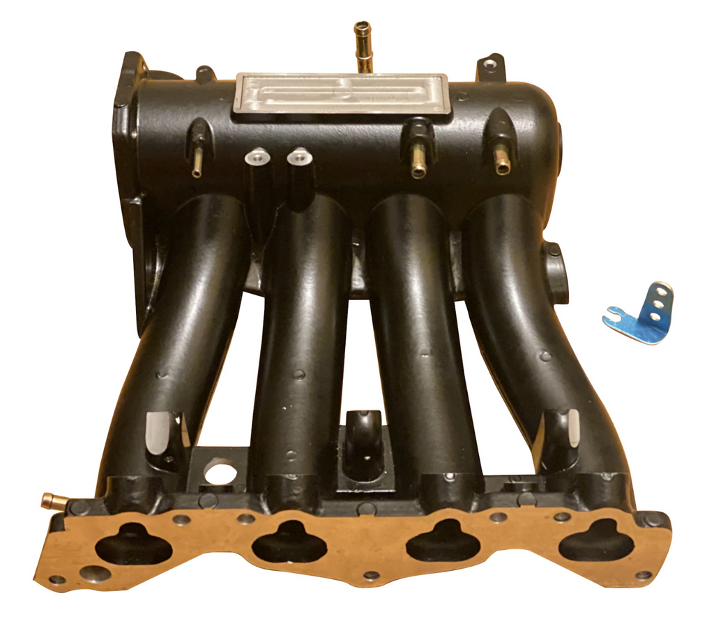 Our cast aluminum Intake Manifold for Honda’s D-series engines are a direct-fit replacement for most D-series engines and are compatible with all factory sensors. Our Intake Manifolds offer horsepower and torque gains greater than competitors’ manifolds but without compromising mid-range power output. The design incorporates specially tapered runners as well as a larger, tapered plenum that together preserve mid-range power but increase and accelerate airflow to allow for significant top-end power gains. Intake Manifold runner exits is also machined to best match the cylinder head’s ports. Our Intake Manifold’s shape and design also increases wave scavenging effects at the engine’s ideal operating range, which allow for a broad increase in usable power.