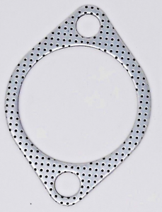 This gasket is manufactured from the sandwiching of two steel plates between which is placed a high temperature mineral fiber card. The completed gasket is mechanically bonded together. This arrangement provides an extremely strong gasket that will adjust to changes in temperatures within the exhaust system.