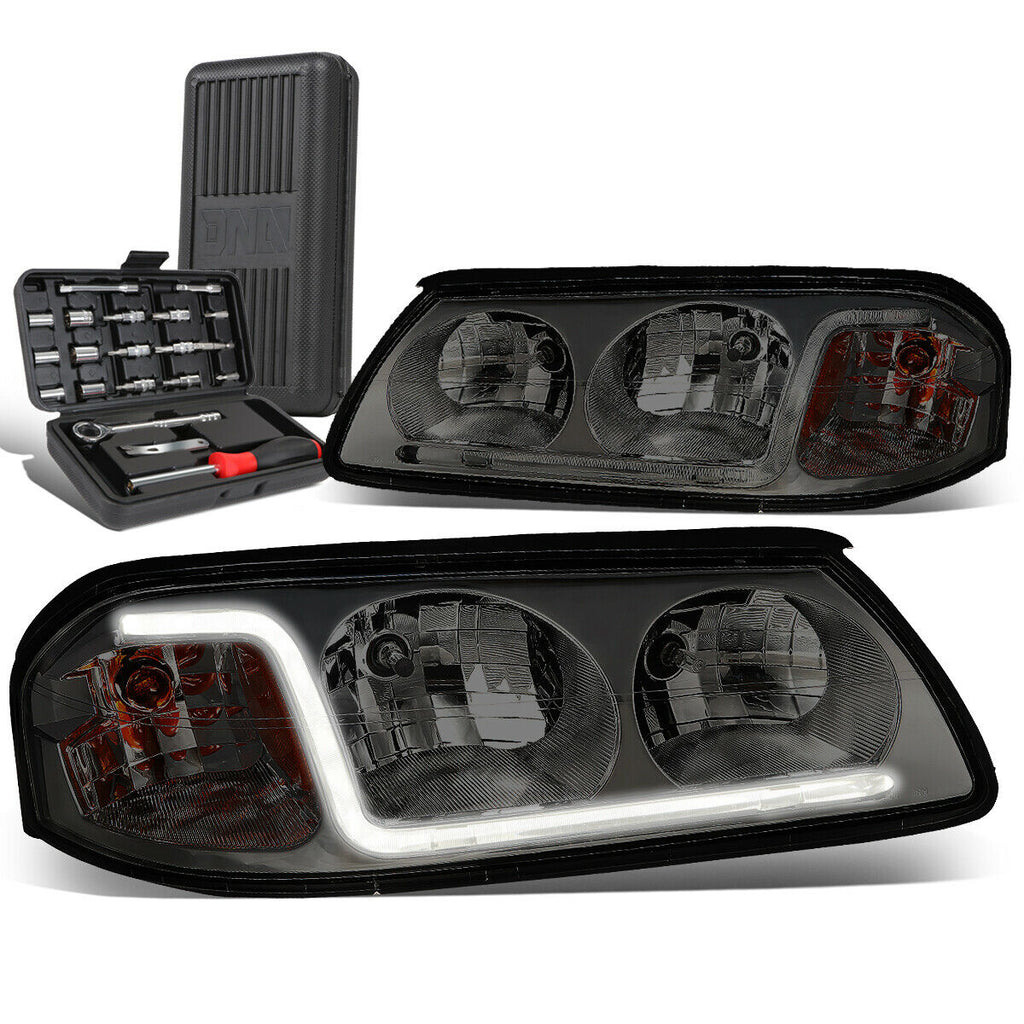 2000-2005 Chevy Impala LED DRL Tube Smoked Amber Signal Headlights+Too