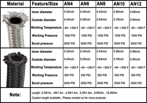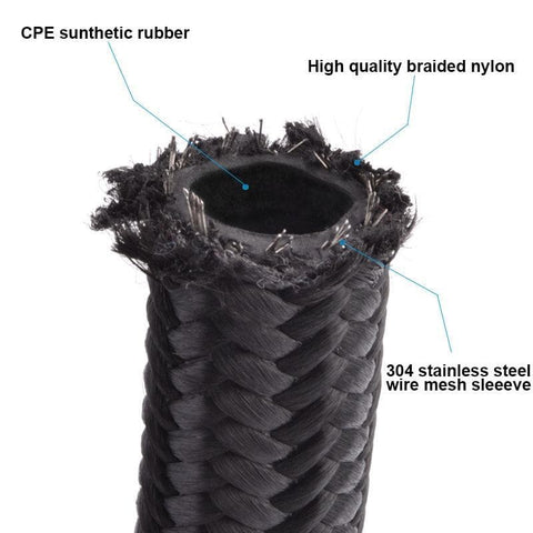 3 Meter AN8 Nylon Braided Oil Hose Black