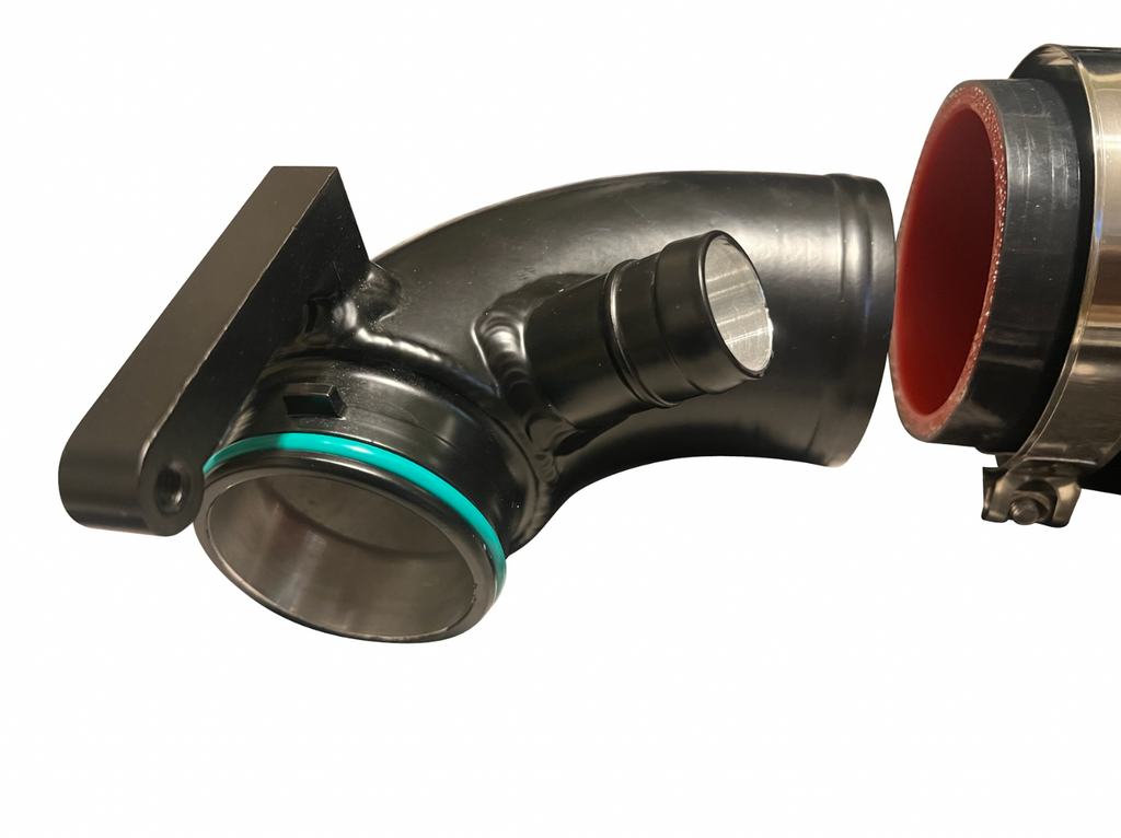 Note: Our inlet elbow must use our inlet hose, the inlet side of the elbow is too large to work with the stock GTI accordion hose.